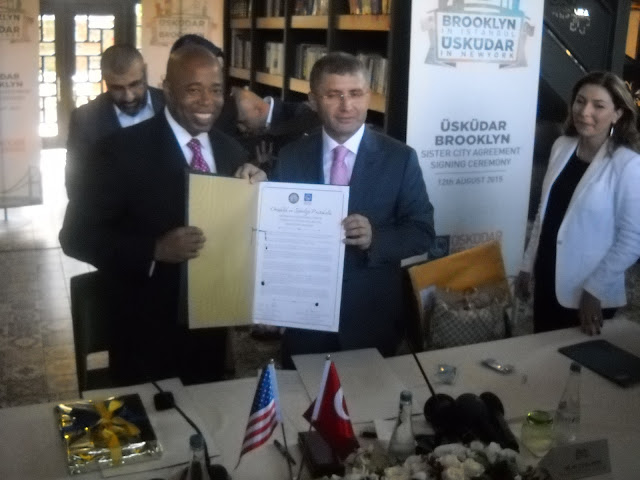 12 Ağustos 2015, İstanbul - Üsküdar Belediyesi, bugün ABD’nin New York Eyaleti’ne bağlı Brooklyn Belediyesi ile Kardeş Şehir Protokolü’nü imzaladı. Bağlarbaşı Kuvvet Merkezi bünyesinde hizmete açılan Nevmekan’da düzenlenen imza töreninde karşılıklı iyi dilek temennilerinin dile getirildi. Törenin ardından Üsküdar Belediye Başkanı Hilmi TÜRKMEN tarafından, Brooklyn Belediye Başkanı Eric L. ADAMS’a özel olarak hazırlanan bir tanbur hediye edildi. İmzalanan Kardeş Şehir Protokolü, Üsküdar ve Brooklyn sakinleri arasındaki sosyal bağları kuvvetlendirirken, iki şehrin ekonomik ve kültürel kalkınmalarına da destek sağlayacak.